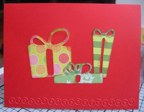 I made this birthday card for a 10-year old boy using the Slice. Still loving it! I added some glitter glue to the bows, inked the edges, and used a Cuttlebug embossing folder strip for the circles at the bottom. He may not appreciate it, but it was a very fast card.