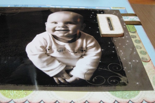 Here are a couple of closeups showing the letter details, which were from a Scrapper’s Guide digital kit. I imported, traced, and print and cut these on my Silhouette, and made an extra one to go on top of the identical letter D on the photo with foam adhesive to make it stand out.