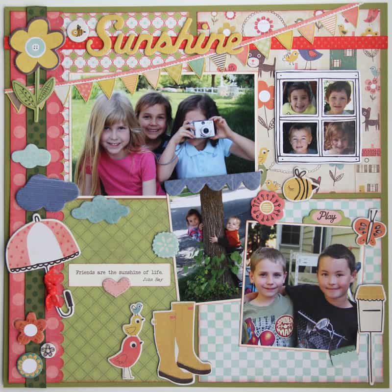 This is a scrapbook page I made using the adorable “Neighborhood Collection” papers and chipboard stickers from Crate Paper.