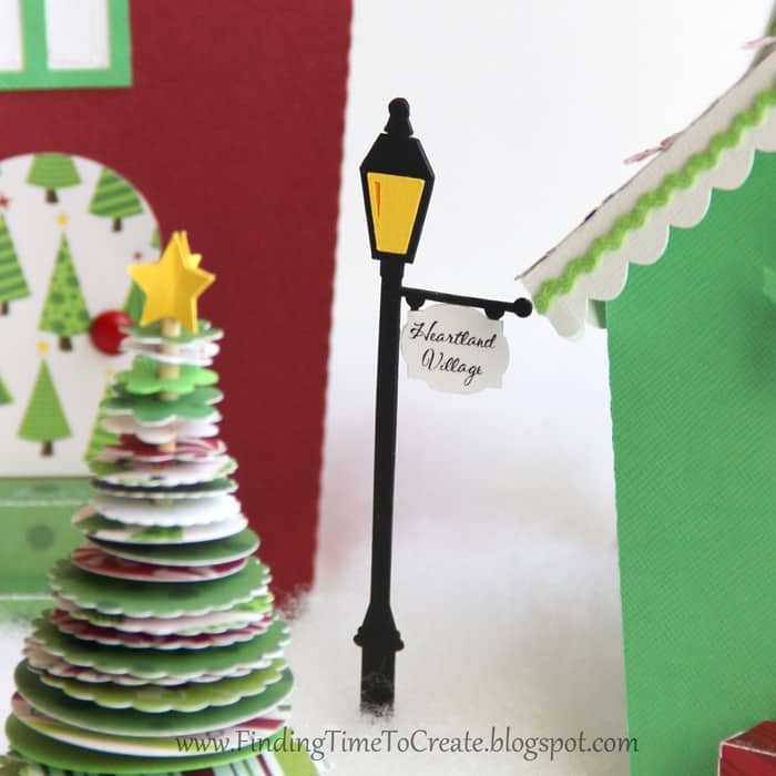 I gave this village to Heartland Paper as a design-team project. The display and template printouts are at the store, and here are the Silhouette cutting files I made. The download includes Studio cutting files for use with a Silhouette machine, PDF files that can be printed and cut by hand, and a supply list. I made these all in 8.5″x11″ format so all Silhouette machines will cut the files. (You’ll lose a tiny bit of the glue flaps on the tall house, but nothing essential.)Here are more photographs of the different pieces: