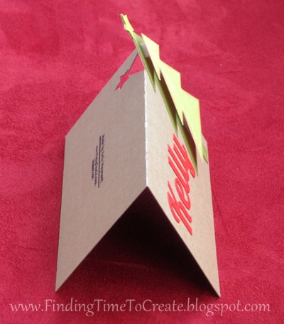 The Christmas tree pops out over the edge and the top of the place card, so the place card itself has a cutout and the welded form of the tree.