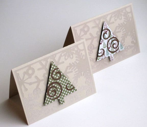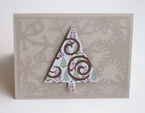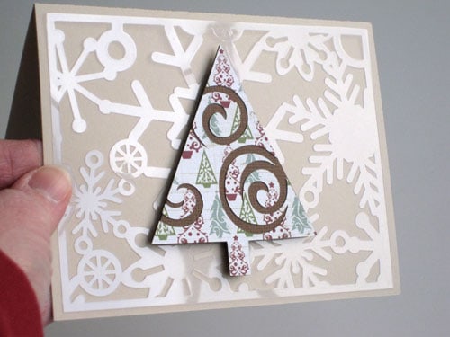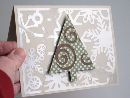 I did cut down my Christmas card list quite a bit this year, but even 18 of these clear card fronts took ages to punch out once I cut them with my Cameo! But I think in the end it was worth it. The tree started out plain but I used some swirl shapes to make cutouts from the tree using Silhouette Studio’s modify functions.
