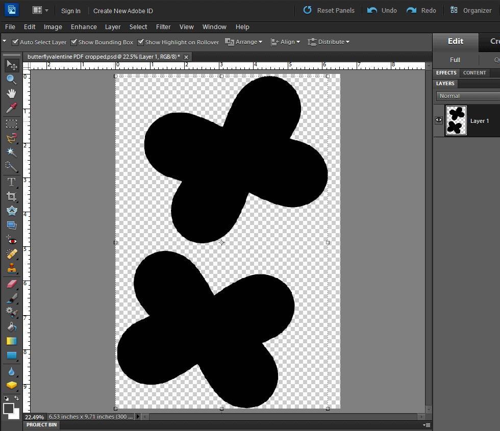 6. This will fill your butterflies with black so they are easier to trace in Silhouette Studio. Save As a PNG file again, this time naming it “butterfly valentine black” (or something that makes sense to you).