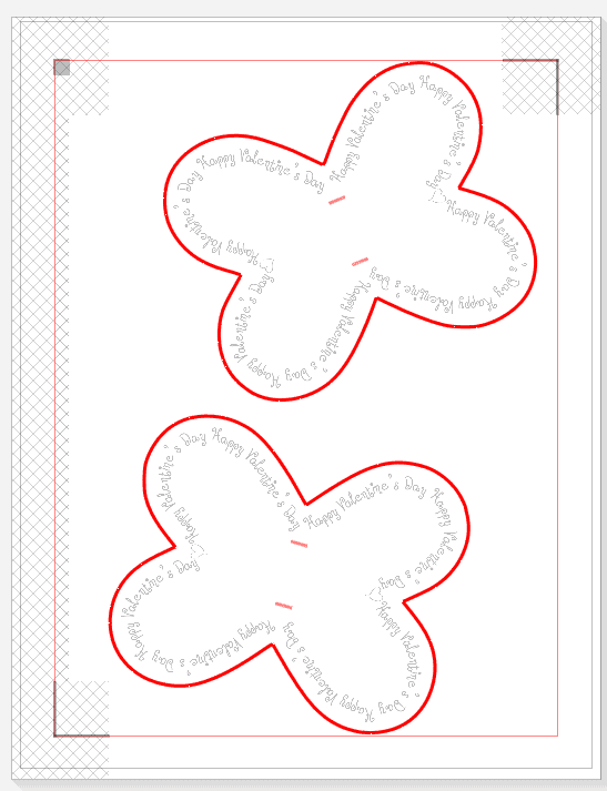 16. Go to the Page window, choose “Letter Size” so you can print from your printer, then move the butterflies to fit within the red cut boundaries, also avoiding the cross-hatch areas. Change the orientation of the page or rotate the shapes if necessary.