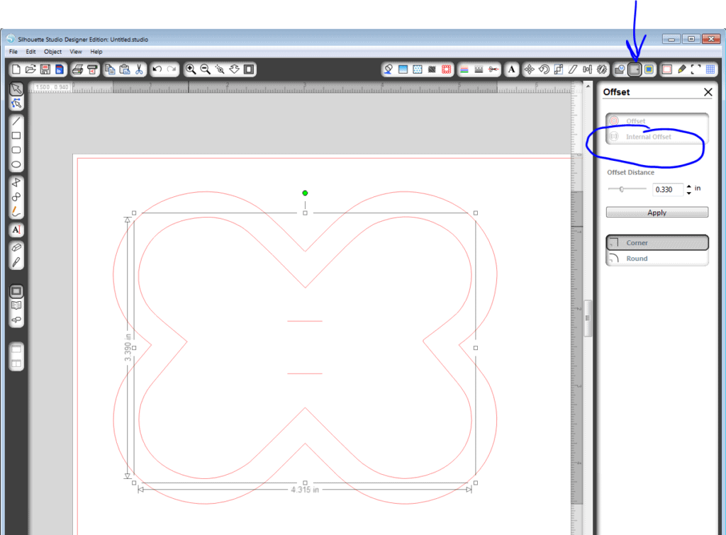 3. Go to the Offset window, choose Internal Offset, choose “corner” or “rounded” based on your own preference–I chose “corner”, and adjust the amount of offset so it looks good.