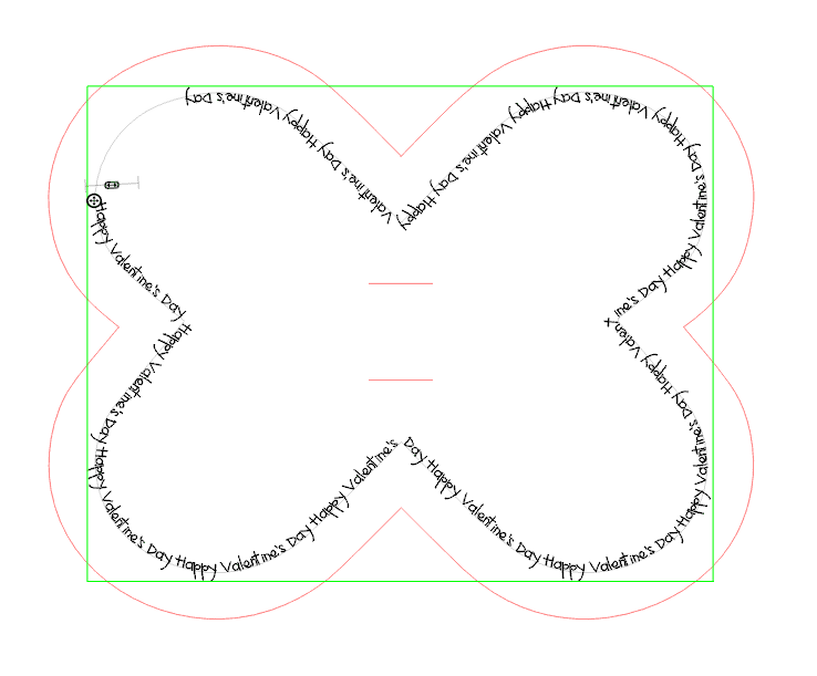 8. While the text is still in “edit” mode (surrounded by a green box), grab the four-pointed arrow and drag the text over to the Internal Offset you created. It will “snap” to any shape it comes across, turning that shape into a text path instead of a cut line while the text is connected to it.