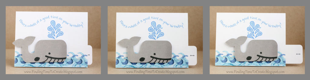 Here are the instructions to my interactive whale card. The whale and spout were Silhouette freebies so you can make this card just like I did, or you can use this template to create any kind of moving card you want! (Think cars, birthday cakes, airplanes, etc.)