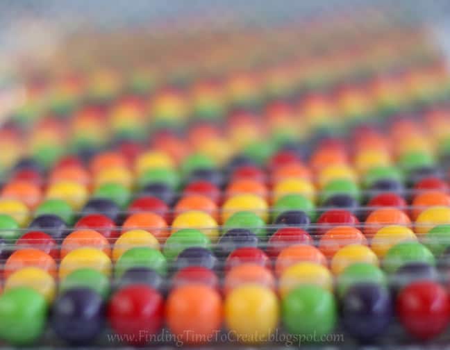 And I don’t know what it is about me, but I just have to line up colors in rainbow order whenever I can. I alternated the starting color in each candy tube, so they made nifty diagonal stripes when all lined up like this. I just had to take a picture of them in this arrangement. It just makes me happy. 🙂