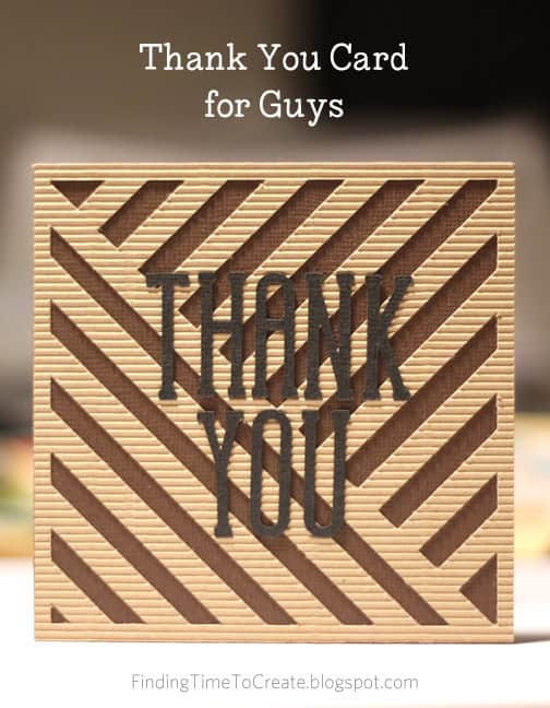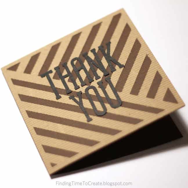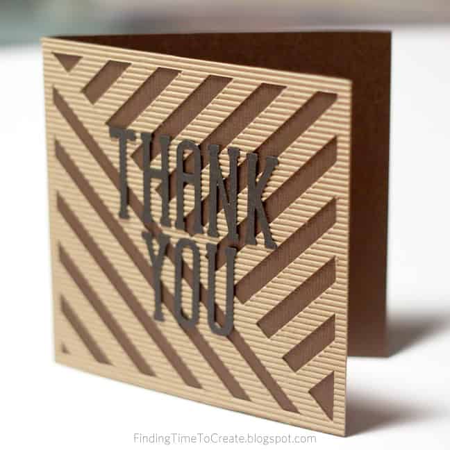 I decided that a nice striped background design with words on top was all that was necessary for this card, but I used Silhouette’s corrugated paper to add the extra dimension and texture it needed. The “thank you” sentiment is cut from the font LW Skinny Type in black adhesive cardstock. Since the corrugated paper has an adhesive back as well, this card required absolutely no adhesive to be separately applied. Love that.