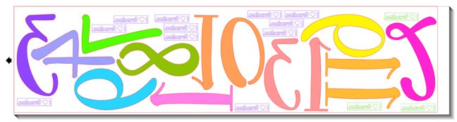 Here’s a screen shot of my first 36″ roll. I cut the remaining four numbers on a second roll. Note that the numbers are reversed, because that’s how heat transfer must be cut. You can also see the little “I ♥ Grandma” placed multiple times, each within its own rectangle. The rectangle makes it easier to weed each tiny phrase.