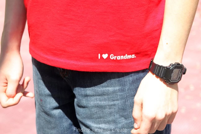 I also cut a little “I ♥ Grandma” for a cute accent on the front of each shirt. It started out as my test-cut item to make sure I had my settings correct, but in the end I packed 14 of them in between the numbers to get all the use out of my heat transfer that I possibly could.