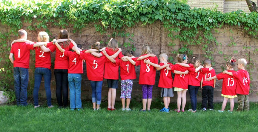 My mother-in-law had an excellent Mother’s Day this year. Her daughter got all of us moms together to make a photo album for Grandma with a two-page spread from each grandchild with his/her picture and what they love about her. The book was amazing, but we also had all the grandchildren numbered in age order on the back of red T-shirts. I added the numbers with heat transfer material to each shirt.