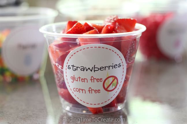 My daughter’s best friend is allergic to gluten and corn, so dessert for this party was a bit tricky. We decided to do an ice cream sundae bar with plain vanilla ice cream and lots of toppings. I couldn’t find any candy to avoid those allergies, but we did have plenty of fruit toppings.