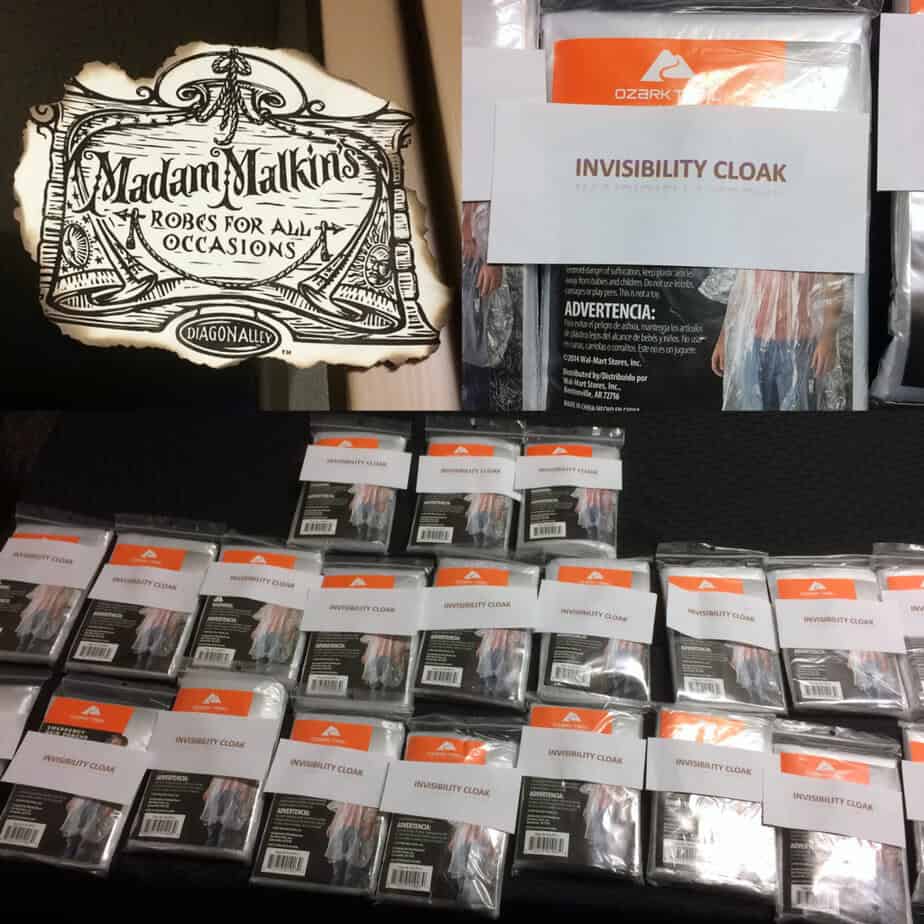 Madam Malkin’s is where the girls picked up an invisibility cloak (a clear rain poncho).