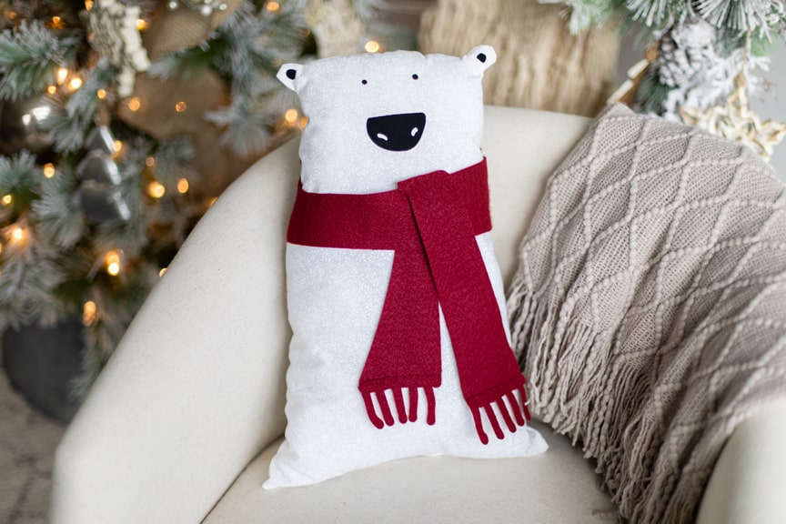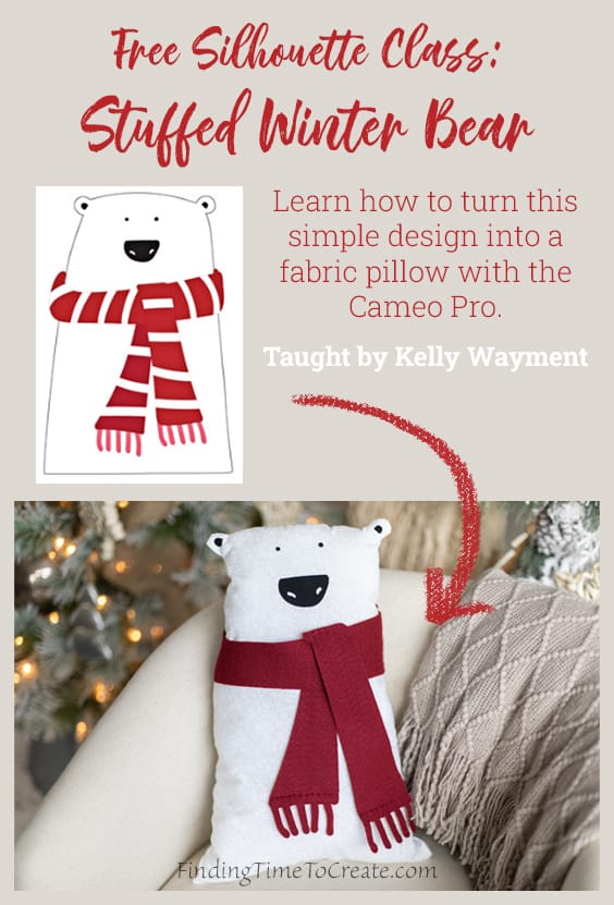 Add a cozy touch to your winter décor with this adorable stuffed winter bear! Learn how to take advantage of the large 24-in. mat and fabric-cutting capabilities of the Cameo Pro with me, Kelly Wayment. I’ll show how to alter this polar bear design to cut with the Cameo Pro, and then sew and stuff it as a pillow. Learn to cut and apply heat transfer and felt embellishments, as well.