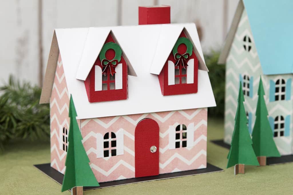 I’ve been working on Christmas projects since August, and I’m not done sharing them yet! These are the chipboard houses I made for Lori Whitlock for her 2-part Silhouette class on Creating a Christmas Village. I used my Silhouette Cameo 4, but any Silhouette cutting machine can be used for this project.