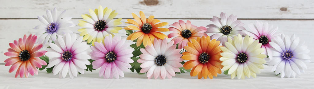 I love making paper flowers. I always have. You’ll find plenty of paper flower projects here on my blog over the years. Today, I want to share some details with you about my latest project. I went a little “daisy crazy” by making a bunch of African daisies with a simple Maison Gregoria daisy design.