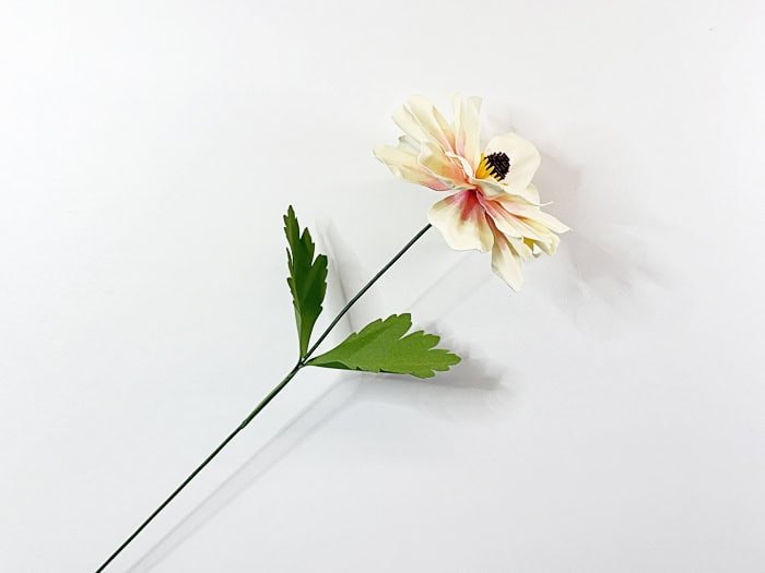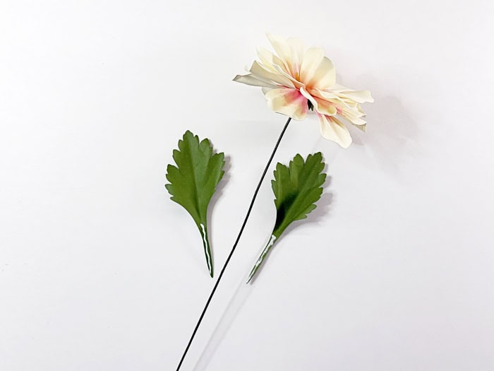 Glue the leaves to the paper-covered wire across from each other, a few inches below the flower.