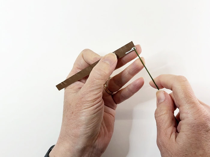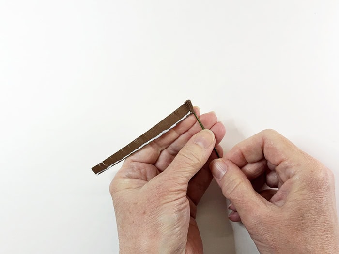 Wrap brown stamen strip around tip of 18-gauge green paper-covered wire stem.